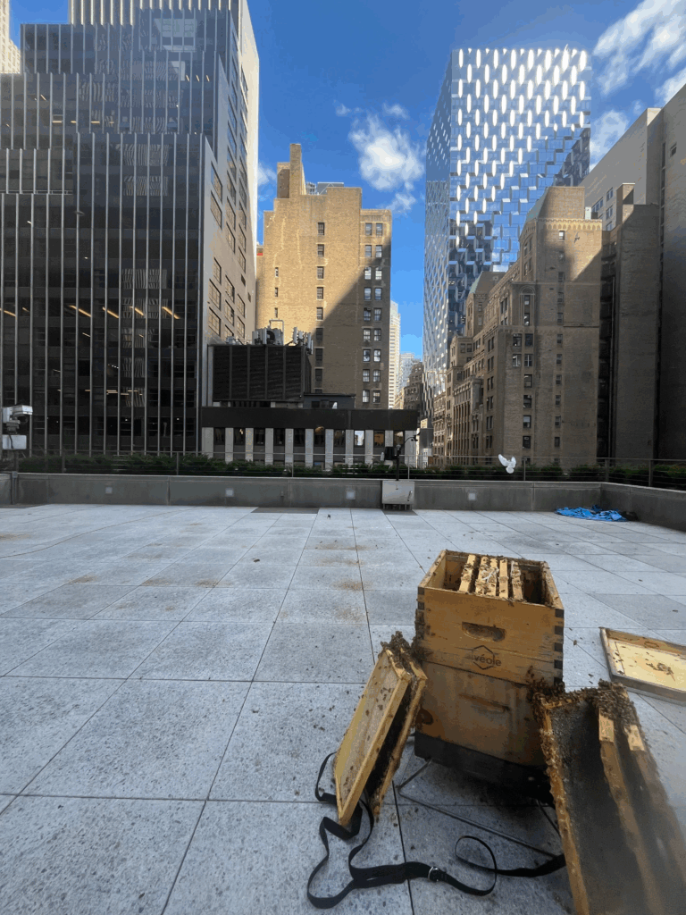Waterfront advantage: The building’s location provides bees with access to diverse urban flora, creating exceptional honey varieties unique to Lower Manhattan.